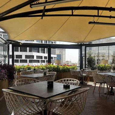در رستورانها و کافهها، حفاظ گیوتینی برقی با قابلیت دوگانه خود، هم بهعنوان پنجره و هم حفاظ استفاده میشود. این ویژگی به صاحبان مشاغل اجازه میدهد. تا فضا را بر اساس شرایط جوی یا نیاز مشتریان تنظیم کنند. و تجربهای مطلوبتر ایجاد کنند. همچنین با باز کردن پنجره می توانند. به تهویه بهتر فضای داخلی خود کمک کنند.