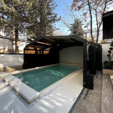استفاده از سقف شفاف متحرک برای استخر مزایای متعددی دارد که به جذابیت و عملکرد آن کمک میکند. این نوع سقف علاوه بر اینکه به خوبی نور طبیعی را به داخل استخر وارد میکند و فضایی روشن و دلپذیر ایجاد مینماید. با قابلیت باز و بسته شدن، میتوان در روزهای آفتابی از هوای آزاد و در روزهای بارانی یا سرد از عملکرد محافظتی آن بهرهبرد. سقفهای شفاف متحرک همچنین به کاهش هزینههای انرژی کمک میکنند، زیرا میتوانند به عنوان عایق حرارتی عمل کنند و دمای آب استخر را در شرایط مطلوب حفظ کنند. علاوه بر این، این سقفها به جلوگیری از ورود گرد و غبار و آلودگیها به داخل استخر کمک میکنند. به طور کلی، سقف شفاف متحرک نه تنها زیبایی استخر را افزایش میدهد بلکه عملکرد و راحتی آن را نیز بهبود میبخشد. سقف متحرک به راحتی استخر روباز شما را به استخری چهارفصل تبدیل می کند.