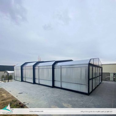 پروژه پوشش متحرک استخر یا سقف تلسکوپی حاضر، ترکیبی از ورقهای پلیکربنات و سازه آلومینیومی میباشد. در صورت صلاح دید مهندسین تیم اجرایی و به در خواست مشتری امکان اجرای دیوارههای پوشش با شیشه نیز وجود دارد.